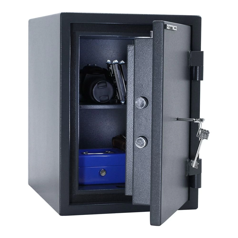 Die Feuerschutztresore FireHero von Rottner Security eignen sich ideal für die brand- und einbruchsichere Aufbewahrung von Wertgegenständen, Bargeld und wichtigen Dokumenten. Durch den hochwertigen, kombinierten Schutz vor Einbruch und Feuer sind sie ideal für die Verwendung im privaten sowie im gewerblichen Bereich geeignet. Der Brandschutz schützt zuverlässig vor Feuer wie Hitze und durch die aufquellenden Brandschutzdichtungen auch vor Löschwasser. Die FireHero Tresore bestehen aus einer mehrwandigen Konstruktion, die mit einem hochmodernen Isolationsfüllstoff ausgefüllt ist. Die massive Tür wird über 4 massive Sperrbolzen auf 3 Seiten gesichert.