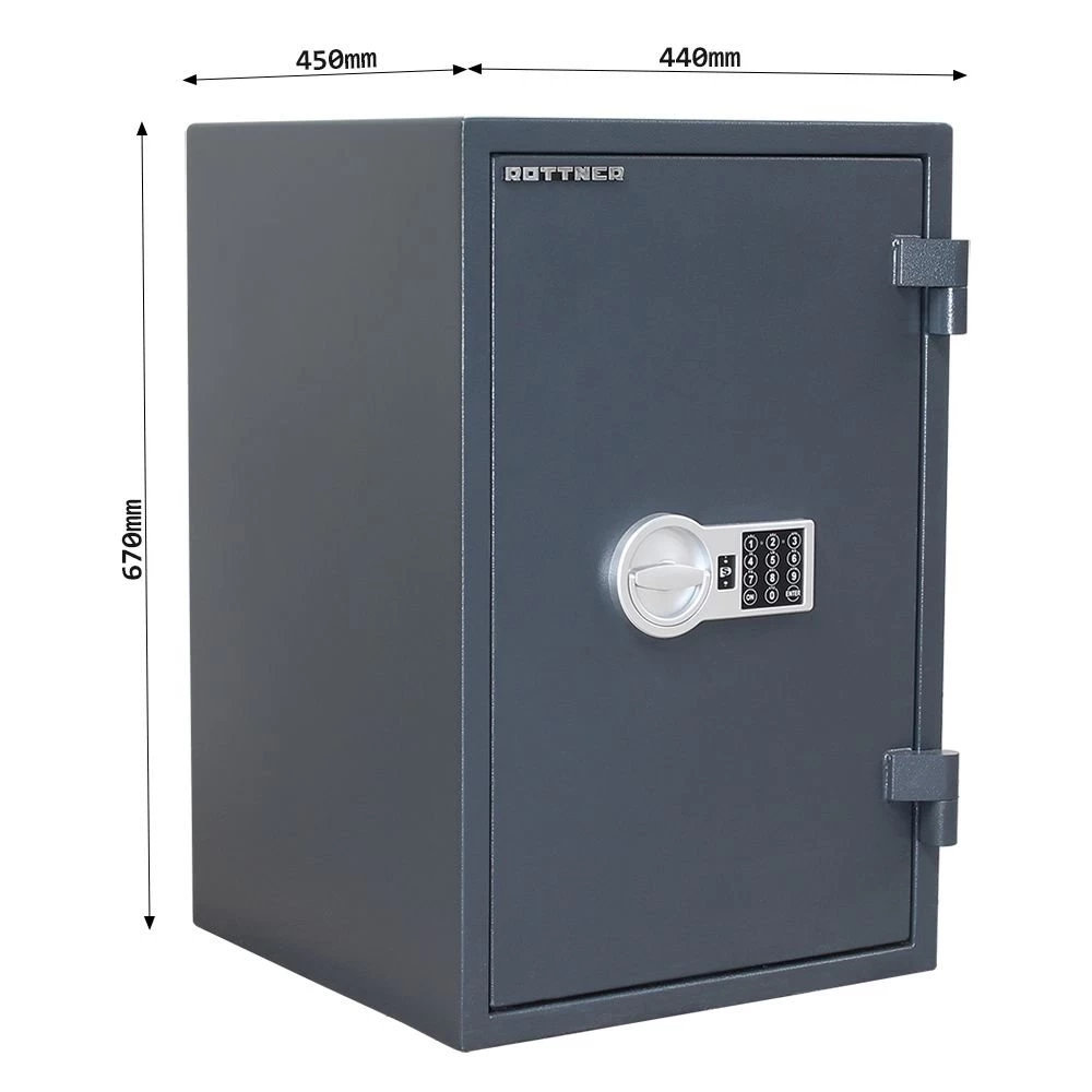 Die Feuerschutztresore FireHero von Rottner Security eignen sich ideal für die brand- und einbruchsichere Aufbewahrung von Wertgegenständen, Bargeld und wichtigen Dokumenten. Durch den hochwertigen, kombinierten Schutz vor Einbruch und Feuer sind sie ideal für die Verwendung im privaten sowie im gewerblichen Bereich geeignet. Der Brandschutz schützt zuverlässig vor Feuer wie Hitze und durch die aufquellenden Brandschutzdichtungen auch vor Löschwasser. Die FireHero Tresore bestehen aus einer mehrwandigen Konstruktion, die mit einem hochmodernen Isolationsfüllstoff ausgefüllt ist. Die massive Tür wird über 4 massive Sperrbolzen auf 3 Seiten gesichert.