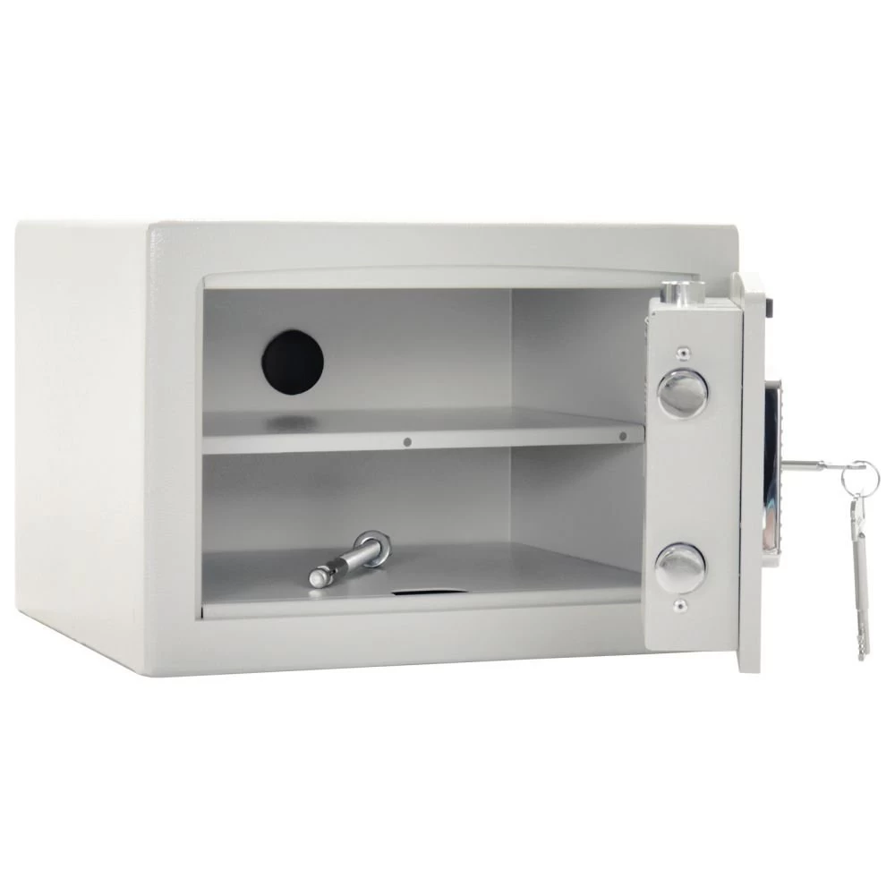 Standardmäßig wird dieser Tresor mit einem hochsicheren Doppelbartschloss inklusive 2 Schlüsseln ausgeliefert. Optional kann Ihr Tresor jedoch auch mit einem Elektronikschloss ausgestattet werden. Beide Schloss-Ausführungen verfügen über einen Aufbohrschutz. Näheres dazu können Sie unserem Tresor-Konfigurator entnehmen.