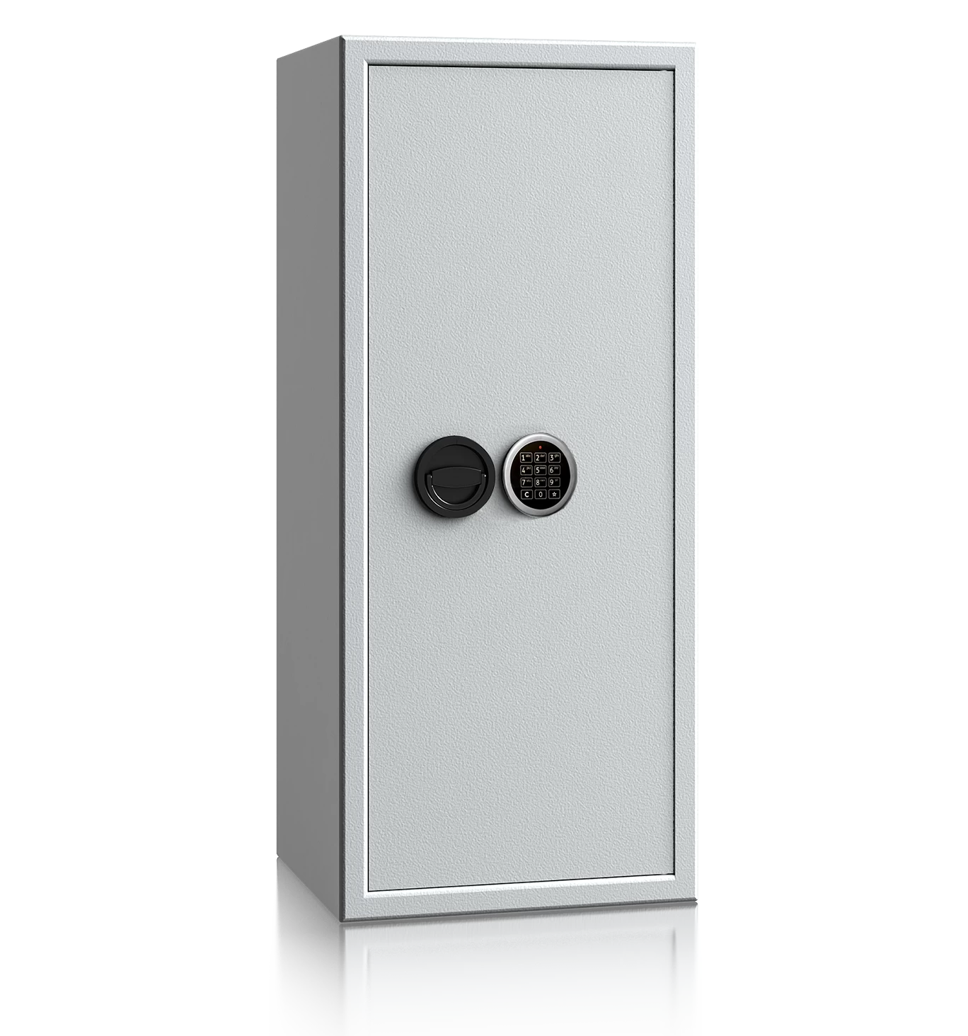 Standardmäßig werden diese Aktentresore mit einem hochsicheren Doppelbartschloss der Klasse 1 (VdS), inklusive 2 Schlüsseln (65 mm Länge) ausgeliefert. Optional steht das Modell auch mit einem komfortablen Elektronikschloss zur Auswahl. Das Riegelwerk wird durch einen flachen, schwarzen Muschelgriff betätigt.