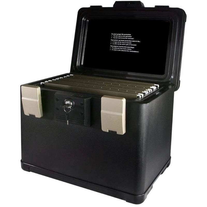 Diese feuerfesten Dokumentenkassetten bieten hochwertigen, 30-minütigen Brandschutz, zertifiziert durch UL (Underwriters Laboratories). Das eingesetzte Testverfahren setzt voraus, dass die Innentemperatur nicht über 177°C steigt. Bei Temperaturen darüber würde Papier verschwärzen. Getestet wird bei einer Temperatur von 843°C. Durch die hochwertige Verarbeitung und die doppelten Sicherheitslaschen ist diese Dokumentenkassette ebenfalls für bis zu 24 Stunden wasserdicht. Dies wurde auch durch unabhängige Prüfungen bestätigt.