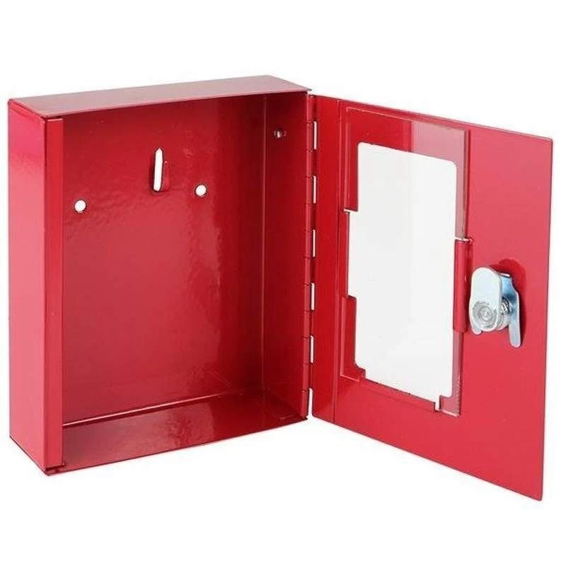 Diese Notschlüsselkasten überzeugen durch hohe Qualität zu gleichzeitig niedrigem Preis. Im klassischen Design gearbeitet, erlauben Sie den einfachen Zugriff zum darin gelagerten Notschlüssel, durch das Einschlagen der Glasscheibe. Die Glasscheiben sind einfach austauschbar und auf Anfrage erhältlich. Zur Ausstattung gehört ein Sicherheits-Zylinderschloss inkl. 2 Schlüsseln und einem fest-angebrachten Schlüsselhaken. 2 Löcher in der Rückwand ermöglichen eine stabile Wandbefestigung. Das benötigte Befestigungsmaterial, bestehen aus Schrauben und Dübel, liegt dem Lieferumfang bei. Ebenfalls ist ein Modell mit Glasbruchhammer erhältlich.