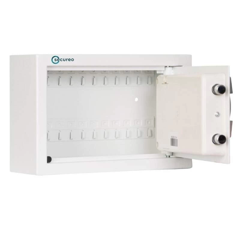 Die komfortablen Protector Key Schlüsseltresore von Secureo erlauben eine schnelle, sichere und preisgünstige Verwahrung von wichtigen Schlüsseln. Standardmäßig ausgestattet mit einem elektronischen Zahlenschloss, sorgen sie für leichten Zugang und schnelle Öffnung. Es wird mit 4 Stk. AA-Batterien betrieben, welchen nur bei geschlossener Tür getauscht werden können. Das zusätzliche, versteckte Notschlüsselschloss (inkl. 2 Schlüssel) sorgt dabei für zusätzliche Sicherheit bei Fehlbedienung oder leeren Batterien.