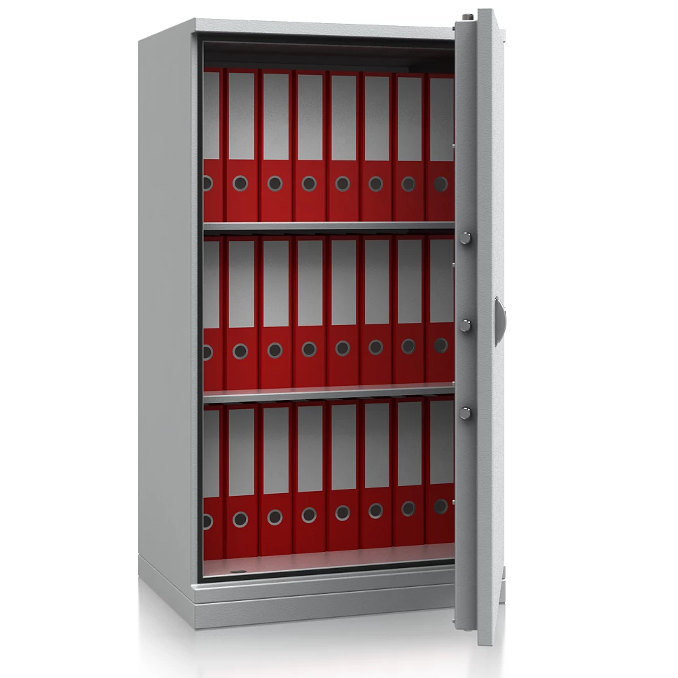 Der feuergeschützte Stahlbüroschrank Condor Basic für 24 Ordner schützt vor Zugriff und Feuer. Die Isolierung des Korpus und der Tür durch feuerbeständige Füllstoffe nach DIN 4102 und die umlaufende Dichtung bildet eine gute Barriere für Flammen und Hitze. Ausgestattet mit 2 höhenverstellbaren Fachböden kann dieser Stahlschrank individuell auf verschiedene Dokumentenformate angepasst werden.