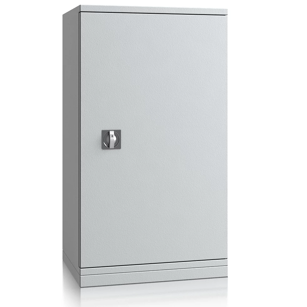 Die stabile Doppelwandkonstruktion wird mit einer ebenfalls doppelwandigen Tür (67,5 mm stark) verschlossen. Für einen sicheren Stand sorgen die Verankerungsbohrungen am Boden (2 Stk.), das Verankerungsmaterial für eine Verankerung liegt dem Lieferumfang bei. Standardmäßig werden diese Stahlschränke mit einem Schlüsselschloss, inklusive 2 Schlüsseln ausgeliefert. Optional steht das Modell auch mit einem komfortablen Elektronikschloss zur Auswahl.