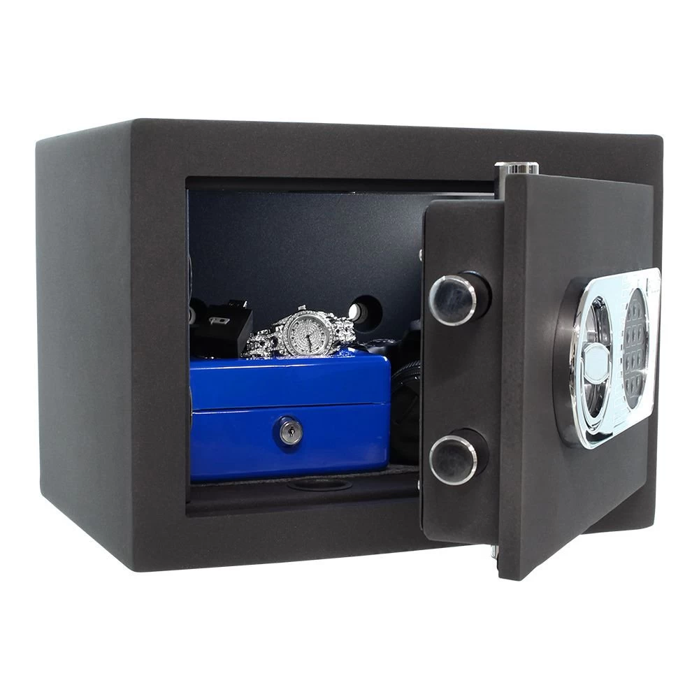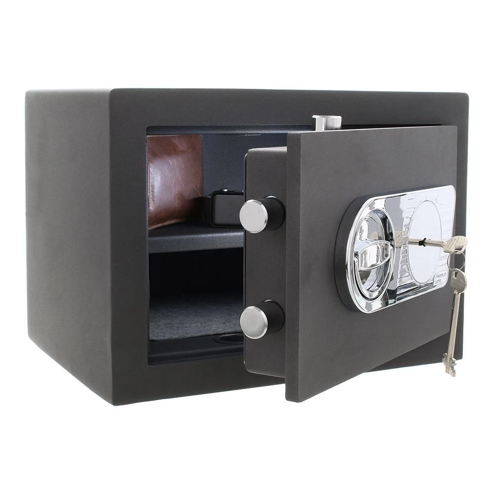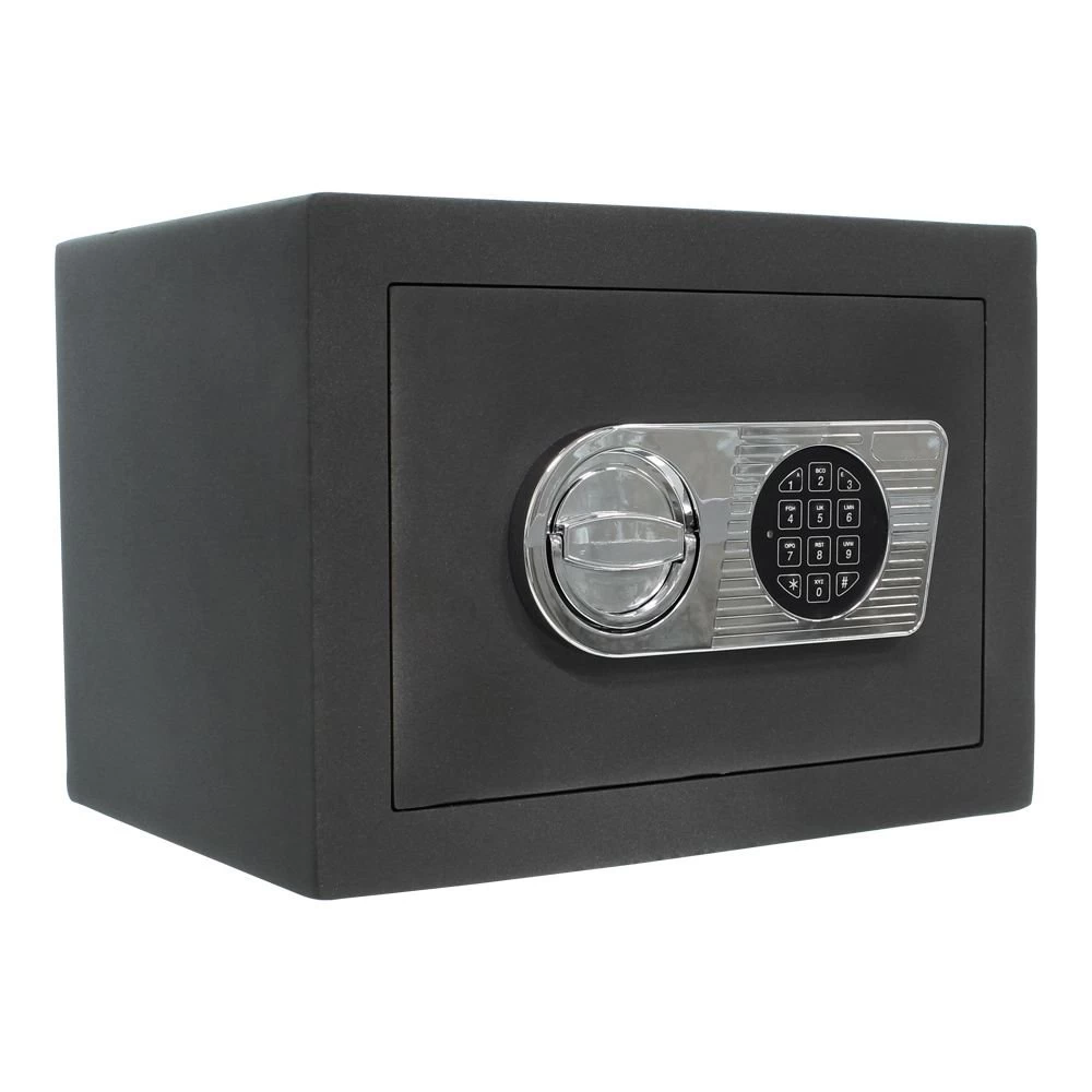Die zuverlässigen Wertschutzschränke aus der Falcon-Reihe von Secureo bieten einen hohen Grad an Sicherheit mit der zertifizierten Sicherheitsstufe 1. Eine massive, 3-seitige Verriegelung durch 25 mm starke Bolzen schützt den Tresor vor jeglichem unerwünschten Zugriff. Der ringsumlaufende Feuerfalz stellt zudem einen begrenzten Feuerschutz sicher. Insgesamt ist diese Bauserie in 5 verschiedenen Ausführungen erhältlich: Damit eignen sich die Stahlschränke ideal für den flexiblen Einsatz sowohl im privaten als auch im gewerblichen Bereich.