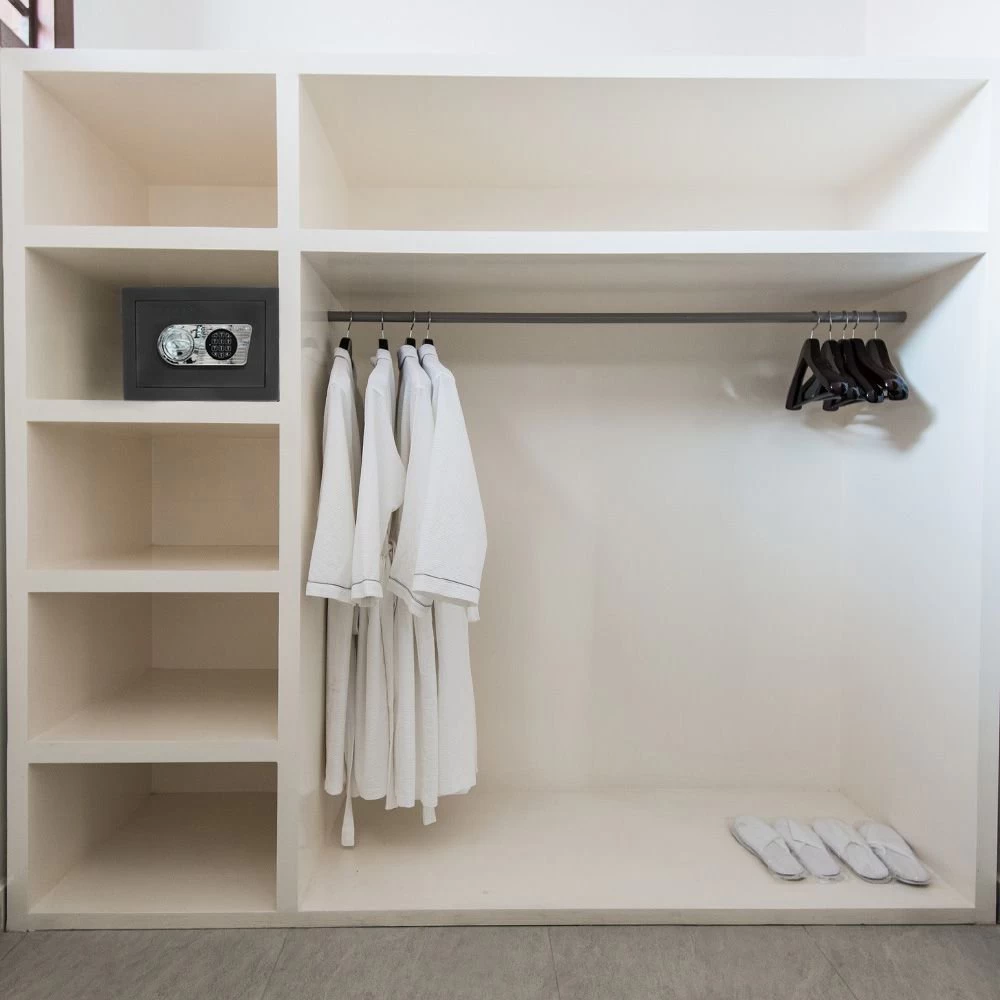 Standardmäßig werden Tresore der Falcon-Reihe mit einem hochsicheren Doppelbartschloss inklusive 2 Schlüsseln ausgeliefert. Optional kann Ihr Tresor jedoch auch mit einem Elektronikschloss ausgestattet werden. Dabei ist der benötigte 9V-Block nicht im Lieferumfang enthalten. Näheres dazu können Sie unserem Tresor-Konfigurator entnehmen.