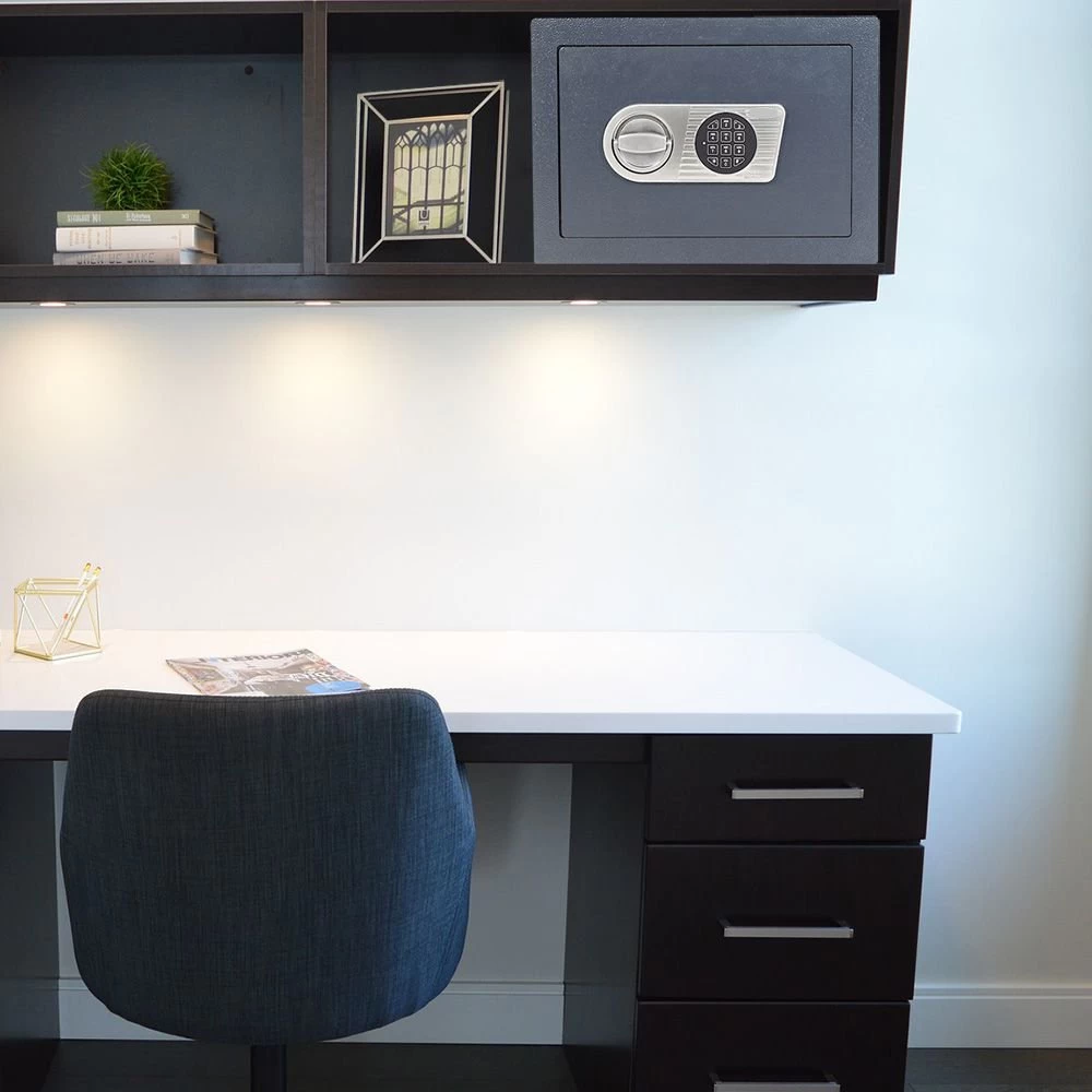 Die zuverlässigen Wertschutzschränke aus der Harrier-Reihe von Secureo bieten einen soliden Grad an Sicherheit mit der zertifizierten Sicherheitsstufe 0. Eine massive, 3-seitige Verriegelung durch 25 mm starke Bolzen schützt den Tresor vor jeglichem unerwünschten Zugriff. Der ringsumlaufende Feuerfalz stellt zudem einen begrenzten Feuerschutz sicher. Insgesamt ist diese Bauserie in 5 verschiedenen Ausführungen erhältlich: Damit eignen sich die Stahlschränke ideal für den flexiblen Einsatz sowohl im privaten als auch im gewerblichen Bereich.