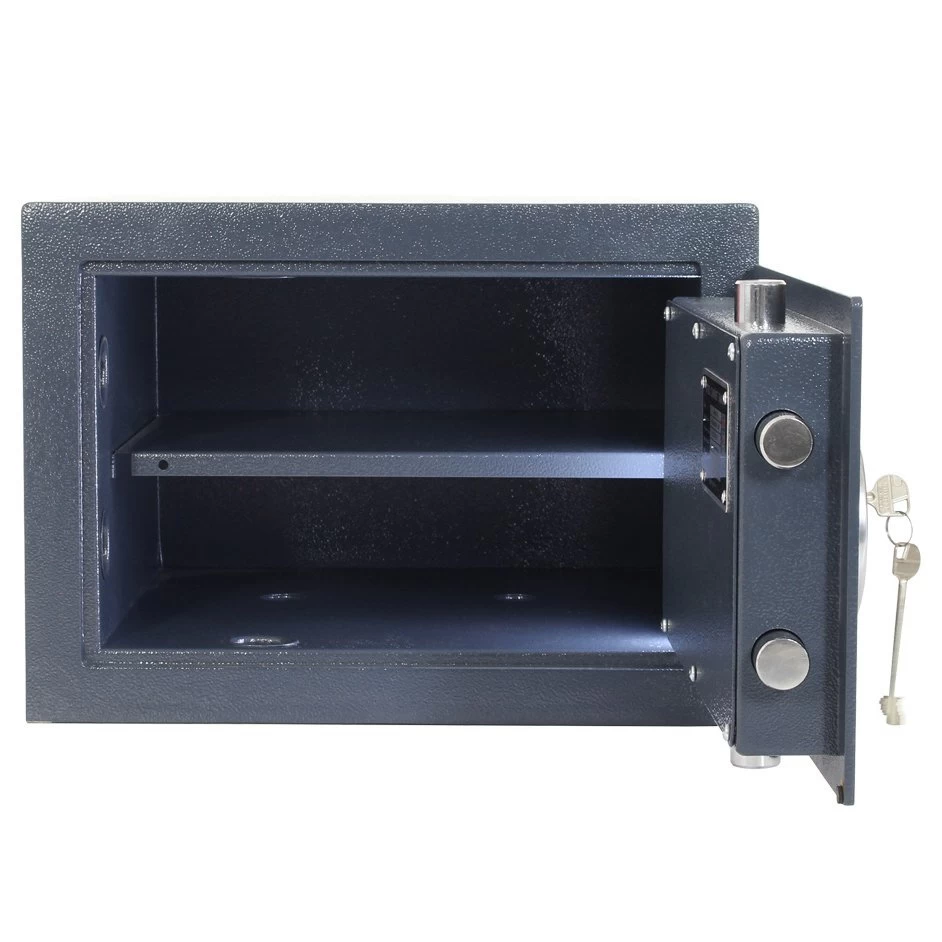 Standardmäßig werden Tresore der Harrier-Reihe mit einem hochsicheren Doppelbartschloss inklusive 2 Schlüsseln ausgeliefert. Optional kann Ihr Tresor jedoch auch mit einem Elektronikschloss ausgestattet werden. Dabei ist der benötigte 9V-Block nicht im Lieferumfang enthalten. Näheres dazu können Sie unserem Tresor-Konfigurator entnehmen.