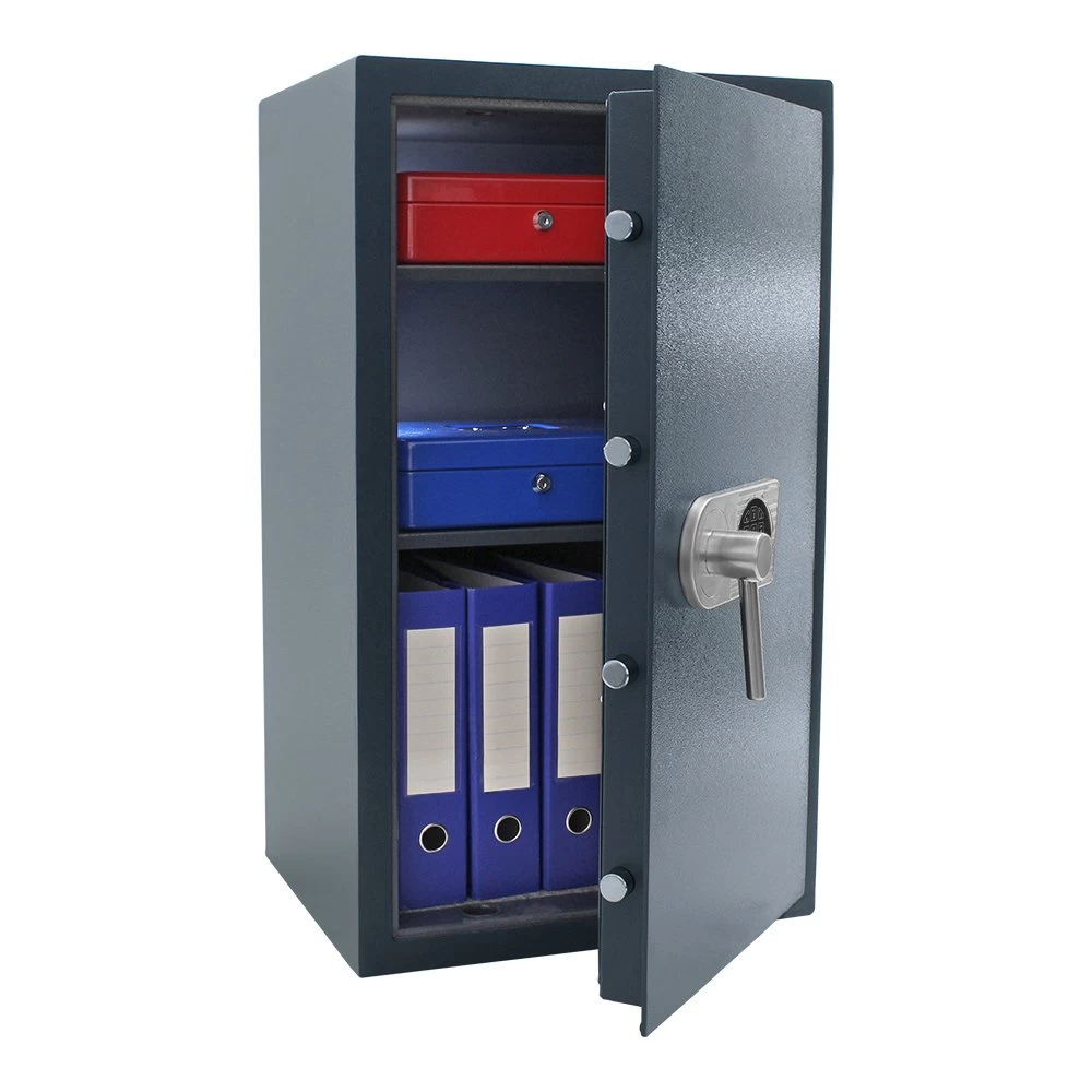 Die zuverlässigen Wertschutzschränke aus der Harrier-Reihe von Secureo bieten einen soliden Grad an Sicherheit mit der zertifizierten Sicherheitsstufe 0. Eine massive, 3-seitige Verriegelung durch 25 mm starke Bolzen schützt den Tresor vor jeglichem unerwünschten Zugriff. Der ringsumlaufende Feuerfalz stellt zudem einen begrenzten Feuerschutz sicher. Insgesamt ist diese Bauserie in 5 verschiedenen Ausführungen erhältlich: Damit eignen sich die Stahlschränke ideal für den flexiblen Einsatz sowohl im privaten als auch im gewerblichen Bereich.