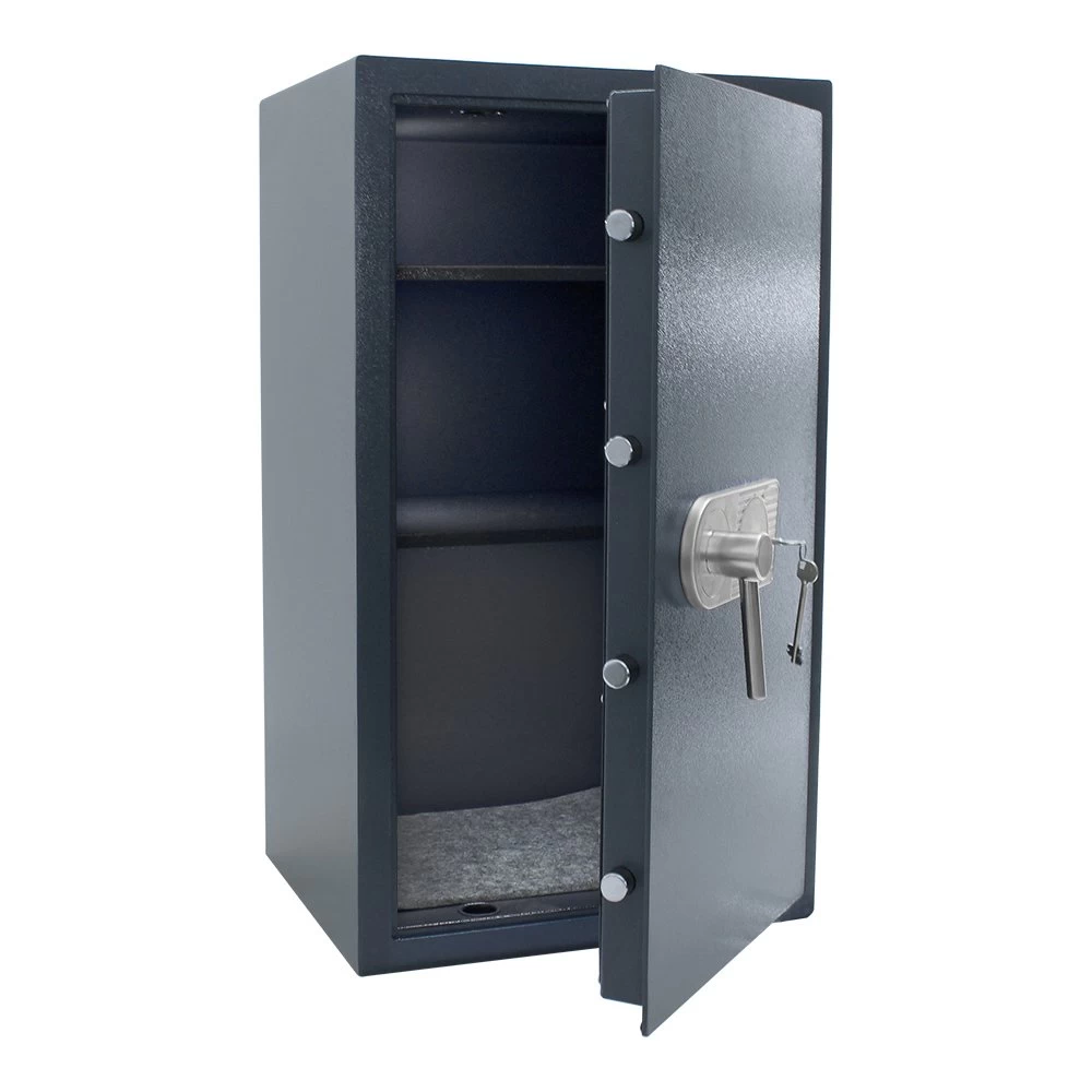 Standardmäßig werden Tresore der Harrier-Reihe mit einem hochsicheren Doppelbartschloss inklusive 2 Schlüsseln ausgeliefert. Optional kann Ihr Tresor jedoch auch mit einem Elektronikschloss ausgestattet werden. Dabei ist der benötigte 9V-Block nicht im Lieferumfang enthalten. Näheres dazu können Sie unserem Tresor-Konfigurator entnehmen.