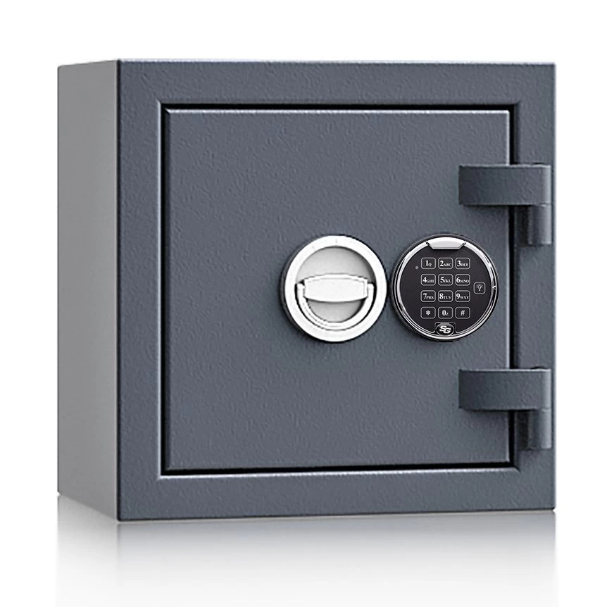 Im Gegensatz zu vergleichbaren Schränken werden diese Wertschutztresore serienmäßig mit einem hochsicheren Doppelbartschloss ausgeliefert, welches über 3 Schlüssel (95 mm lang) verfügt. Auf Wunsch steht jedes Modell auch mit einem komfortablen elektronischen Tastenschloss zur Auswahl. Für einfache Bedienung sorgt der angebrachte Muschelgriff.