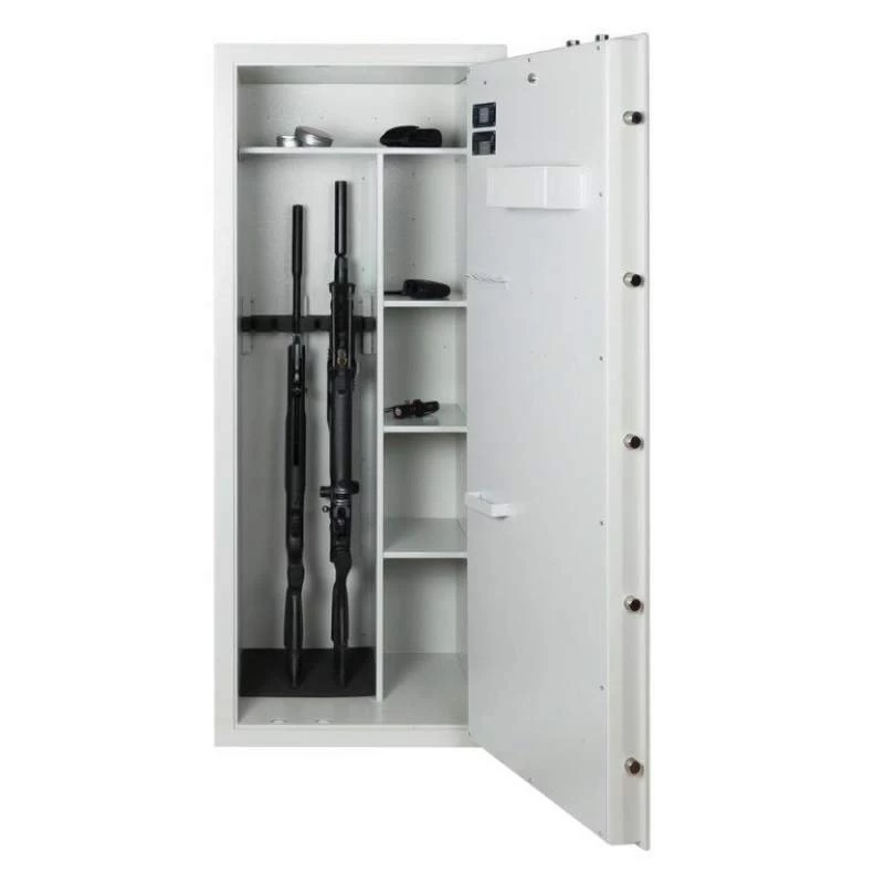 Die SWT-Serie umfasst Waffenschränke mit 6-12 Waffenhaltern. Sie bestehen aus einem dreiwandigen Tresorgehäuse für einen hohen Widerstandsgrad. Die glatte Ummantelung des Waffentresors bietet keinerlei Angriffspunkte für Brechwerkzeuge.