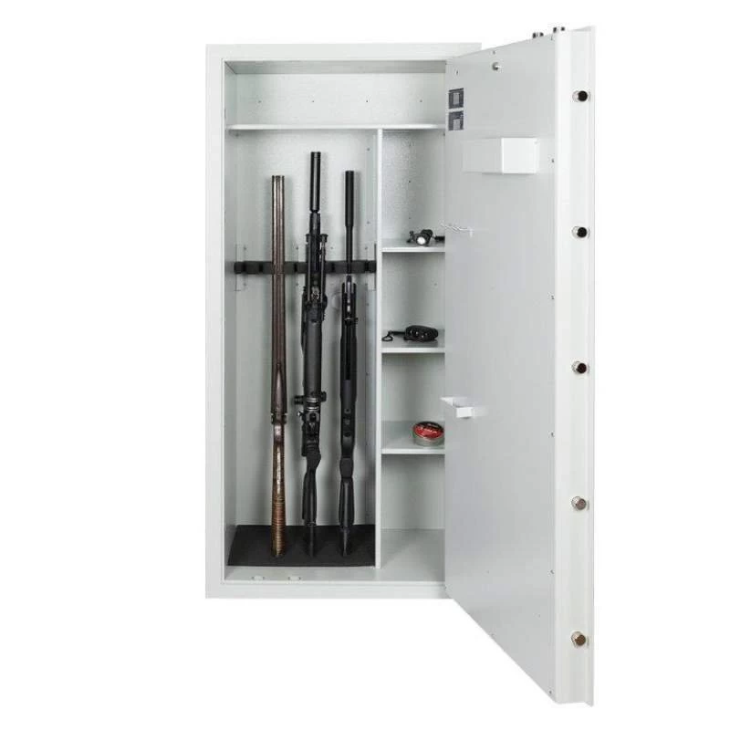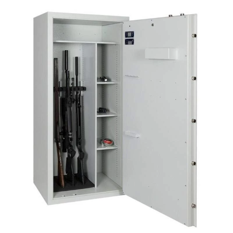 Die SWT-Serie umfasst Waffenschränke mit 6-12 Waffenhaltern. Sie bestehen aus einem dreiwandigen Tresorgehäuse für einen hohen Widerstandsgrad. Die glatte Ummantelung des Waffentresors bietet keinerlei Angriffspunkte für Brechwerkzeuge.