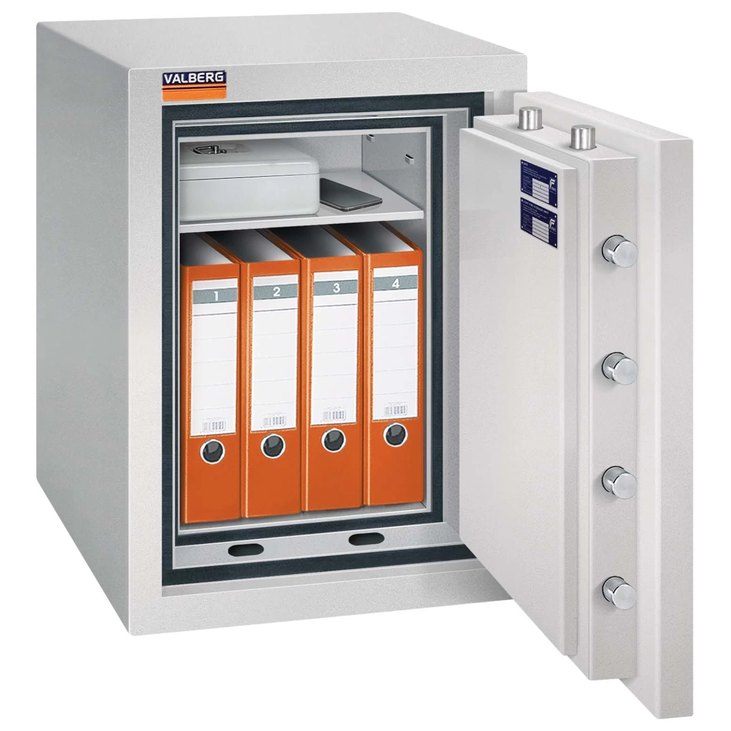 Der Wertschutzschrank ist mit einem Doppelbart-Sicherheitsschloss mit zwei Schlüsseln ausgestattet, auf Wunsch kann er jedoch auch mit einem elektronischen Tastenkombinationsschloss geliefert werden.