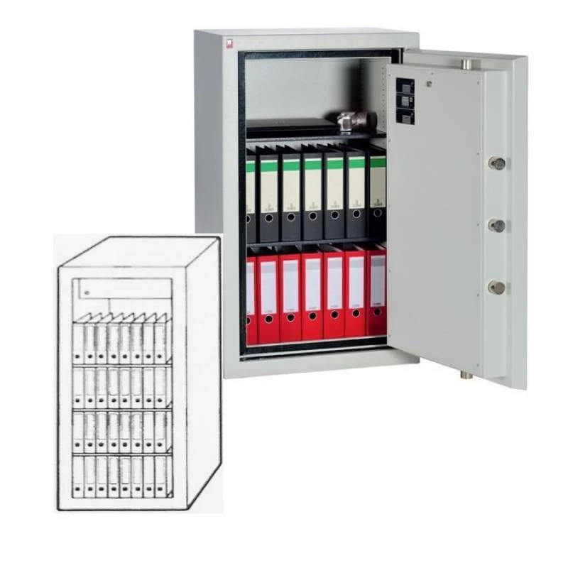 Der SE-II LFS Euroguard Wertschutzschrank von Sistec besitzt einen doppelwandigen Tresorkorpus und eine dreiwandige Tür mit einer Bohr- und Schneidbrennsicherung. Die Wandung ist für einen höheren Widerstandsgrad mit einer Spezialfüllung versehen. Die Tresortür ist mit einer dreiseitigen Verriegelung mit massiven Stahlbolzen und massiven Stahlhintergreiferschienen versehen, wodurch ein Aushebeln der Tür verhindert werden kann. Im Verschlussbereich befindet sich zudem eine formgegossene Spezialpanzerung. Ein vierseitig umlaufender Feuerfalz sorgt für eine gute Feuersicherheit.